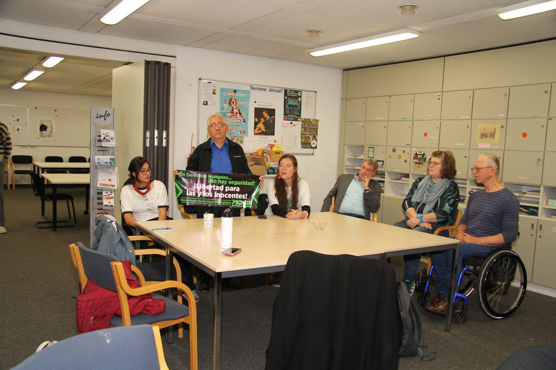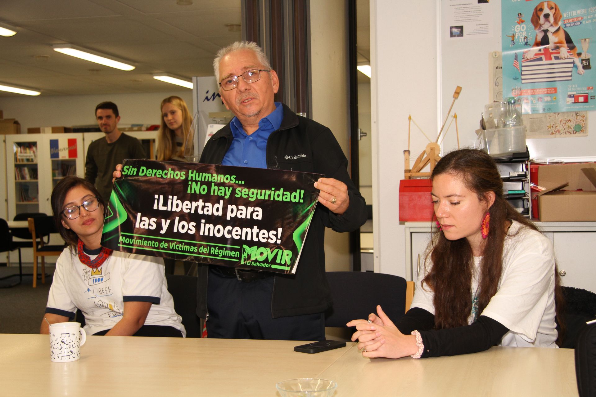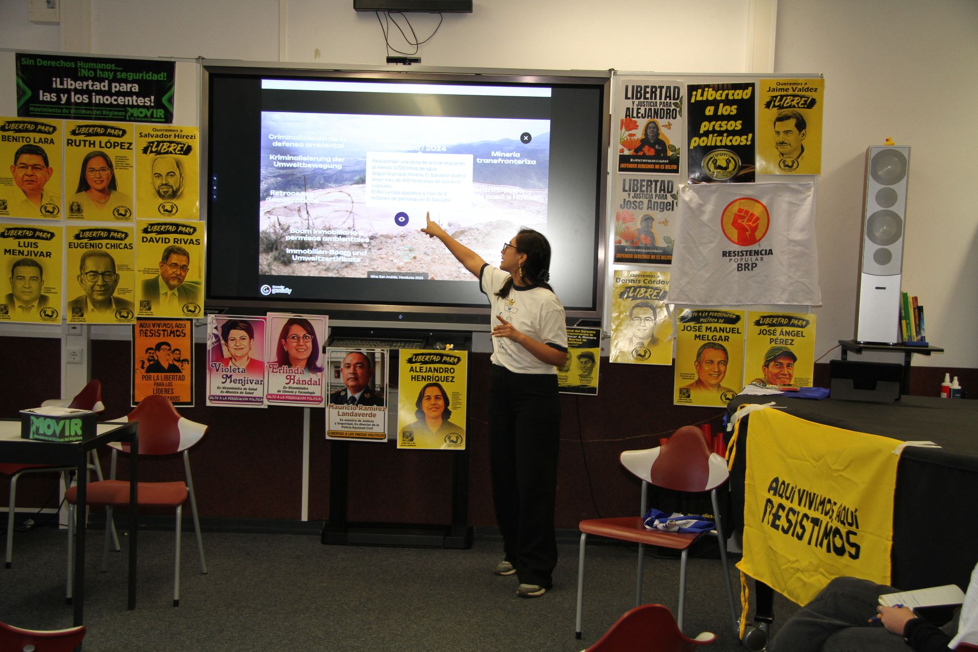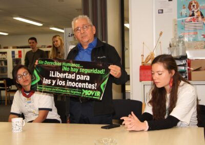 Am Morgen informierten die Gäste zunächst die SchülerInnen des SoWi EF Kurses von Herrn Schröter über die verheerenden Menschenrechtsverletzungen und Umweltzerstörungen, die sich seit der Verhängung des Ausnahmezustandes im März 2022 in dem kleinen mittelamerikanischen Land ereignet haben. In der gut besuchten und von der Eine-Welt AG Fairständnis moderierten Abendveranstaltung mit dem Titel „Wir lassen uns nicht zum Schweigen bringen!“, wurden diese Themen – u.a. auch mit Hilfe von VertreterInnen der Klever Ortsgruppe von Amnesty International – eindrücklich vertieft.