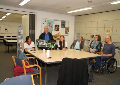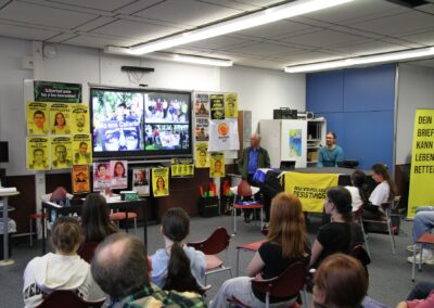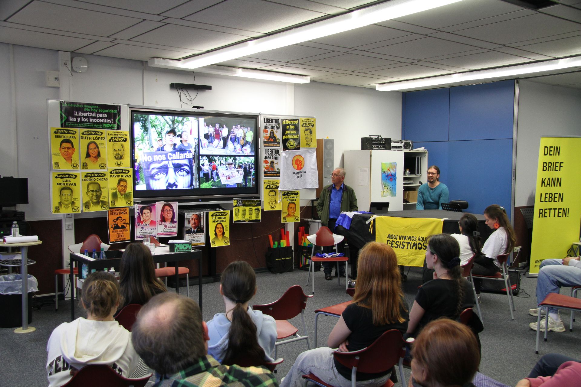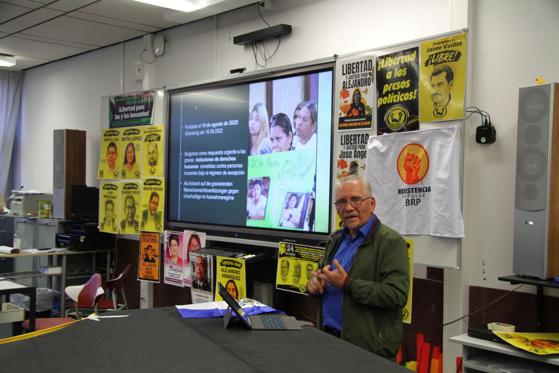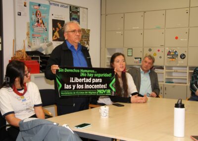Am Morgen informierten die Gäste zunächst die SchülerInnen des SoWi EF Kurses von Herrn Schröter über die verheerenden Menschenrechtsverletzungen und Umweltzerstörungen, die sich seit der Verhängung des Ausnahmezustandes im März 2022 in dem kleinen mittelamerikanischen Land ereignet haben. In der gut besuchten und von der Eine-Welt AG Fairständnis moderierten Abendveranstaltung mit dem Titel „Wir lassen uns nicht zum Schweigen bringen!“, wurden diese Themen – u.a. auch mit Hilfe von VertreterInnen der Klever Ortsgruppe von Amnesty International – eindrücklich vertieft.