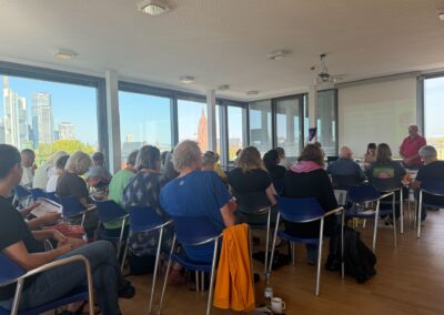 Vom 19.9 – 21.9. trafen sich in Frankfurt a.M. über 50 Mitglieder von Soldaritätsgruppen aus ganz Deutschland zum jährlich stattfindenden Bundestreffen der El Salvador Solidarität. Auch die KAG-SchülerInnen Nayri Kersten und Leander Reintjes (beide EF) waren – in Begleitung ihres Lehrers Bruno Janßen – als VertreterInnen der Eine-Welt AG Fairständnis angereist, um sich über die dramatische Menschenrechtslage in dem kleinen mittelamerikanischen Land zu informieren und sich mit anderen Solidaritätsgruppen über Aktionsmöglichkeiten auszutauschen.