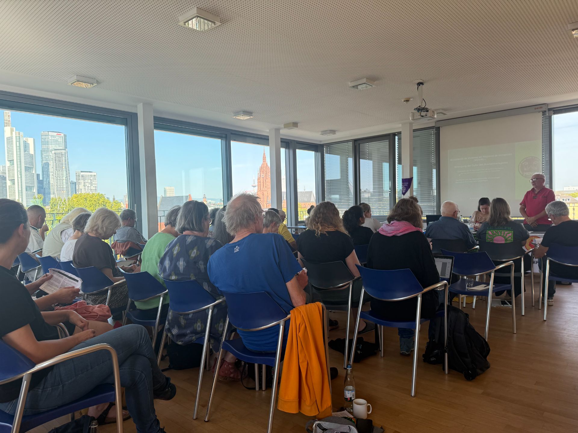 Vom 19.9 – 21.9. trafen sich in Frankfurt a.M. über 50 Mitglieder von Soldaritätsgruppen aus ganz Deutschland zum jährlich stattfindenden Bundestreffen der El Salvador Solidarität. Auch die KAG-SchülerInnen Nayri Kersten und Leander Reintjes (beide EF) waren – in Begleitung ihres Lehrers Bruno Janßen – als VertreterInnen der Eine-Welt AG Fairständnis angereist, um sich über die dramatische Menschenrechtslage in dem kleinen mittelamerikanischen Land zu informieren und sich mit anderen Solidaritätsgruppen über Aktionsmöglichkeiten auszutauschen.