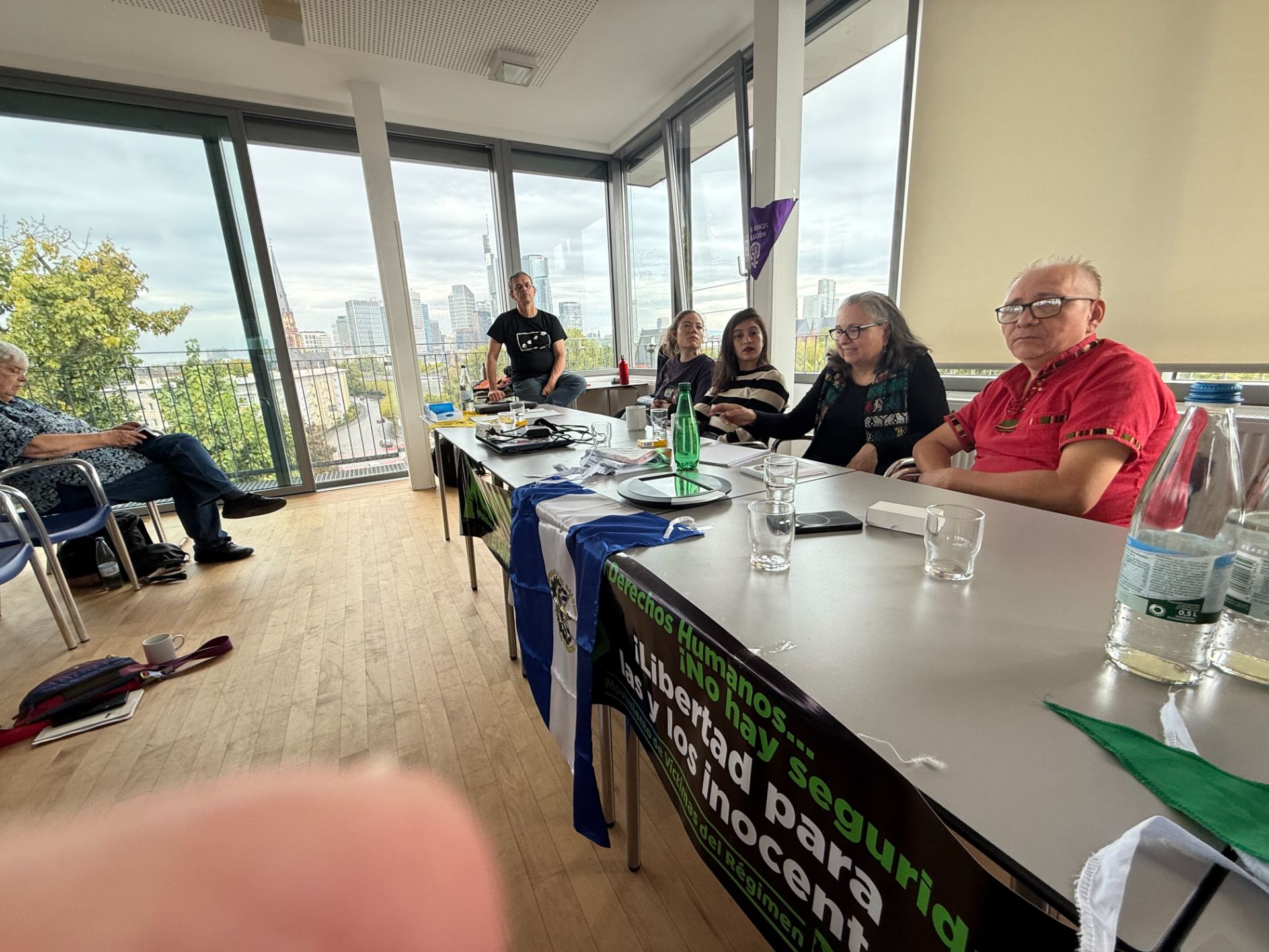 Die beiden salvadorianischen Menschenrechts- und UmweltaktivistInnen Gabriela Solorzano und Samuel Ramirez gaben hierzu gleichsam aktuelle wie erschütternde Einblicke in ein Land, das sich auf dem Weg zur Diktatur befindet.