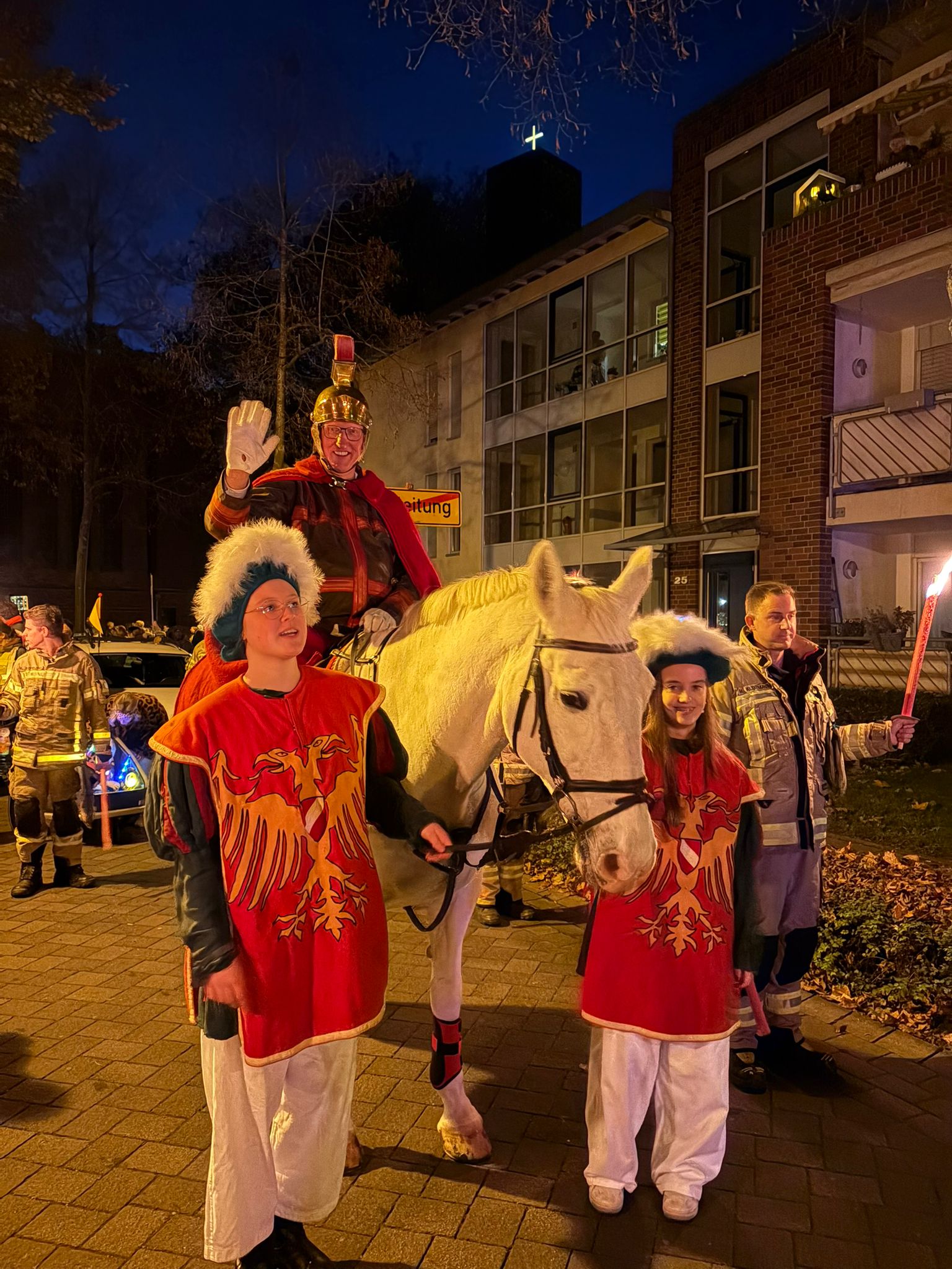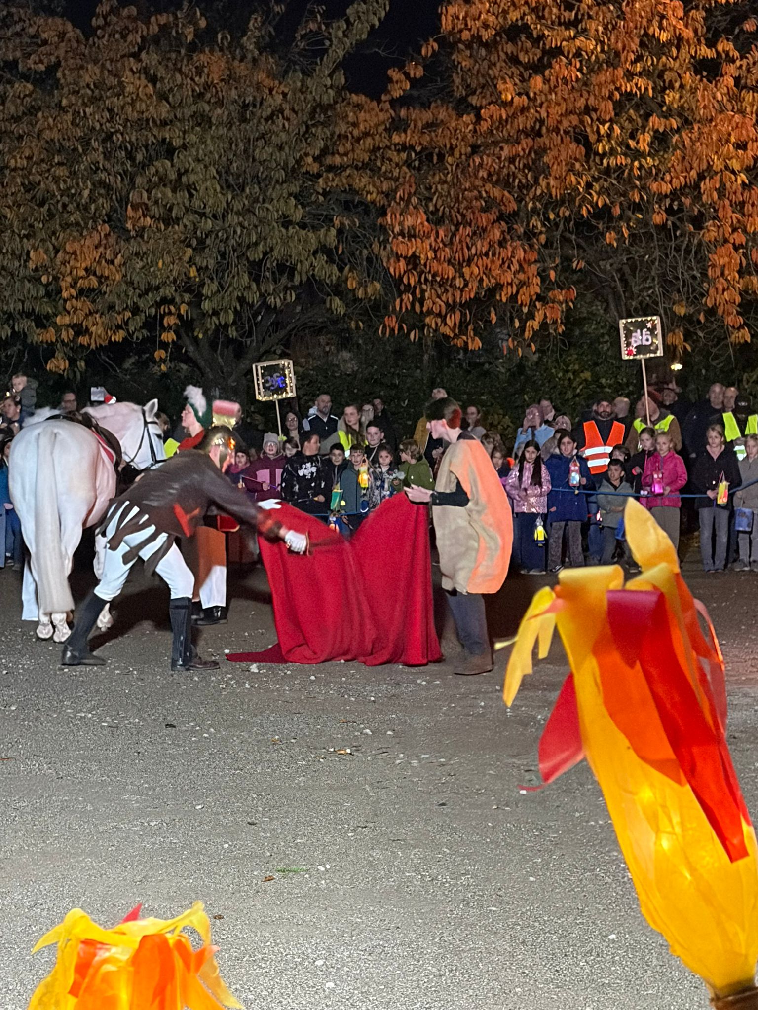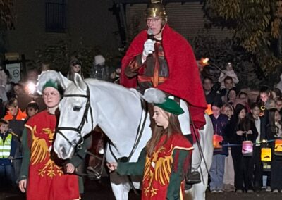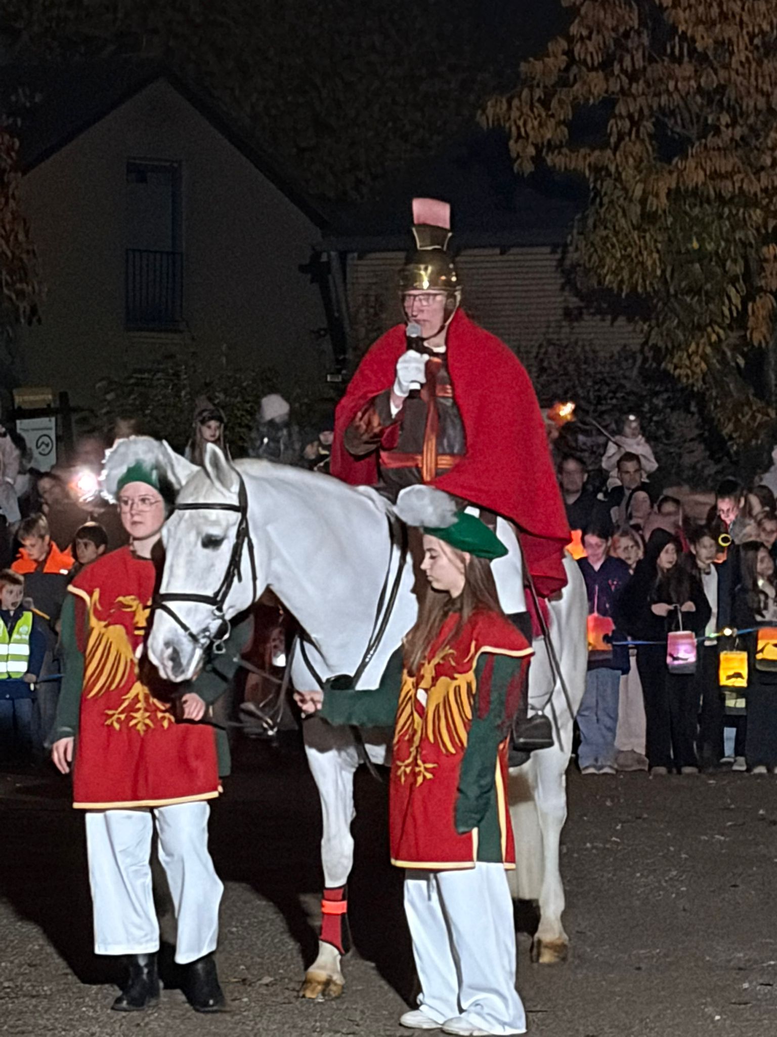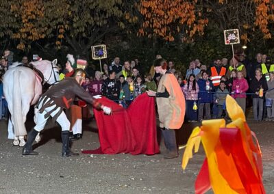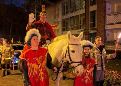 Am 7.11. ist Sankt Martin bei bestem Wetter wieder durch die Straßen von Kellen geritten. Er wurde auch in diesem Jahr wieder von vielen tatkräftigen Helfern vom KAG – und sogar von ehemaligen SchülerInnen! – unterstützt: angefangen von den vielen Helfern am Feuer bis hin zum Bettler, den Knappen und natürlich unserer BigBand. Es war ein wunderschöner Martinszug!