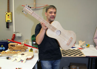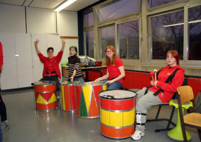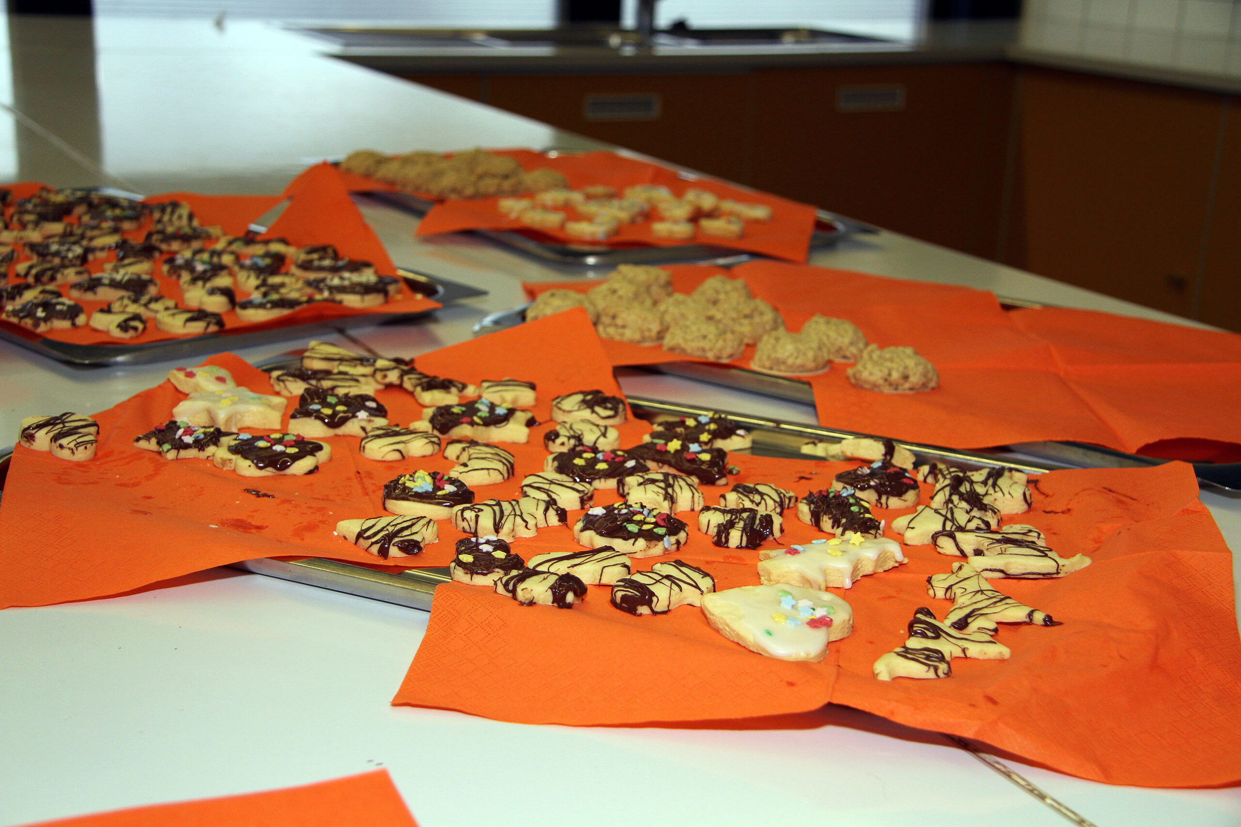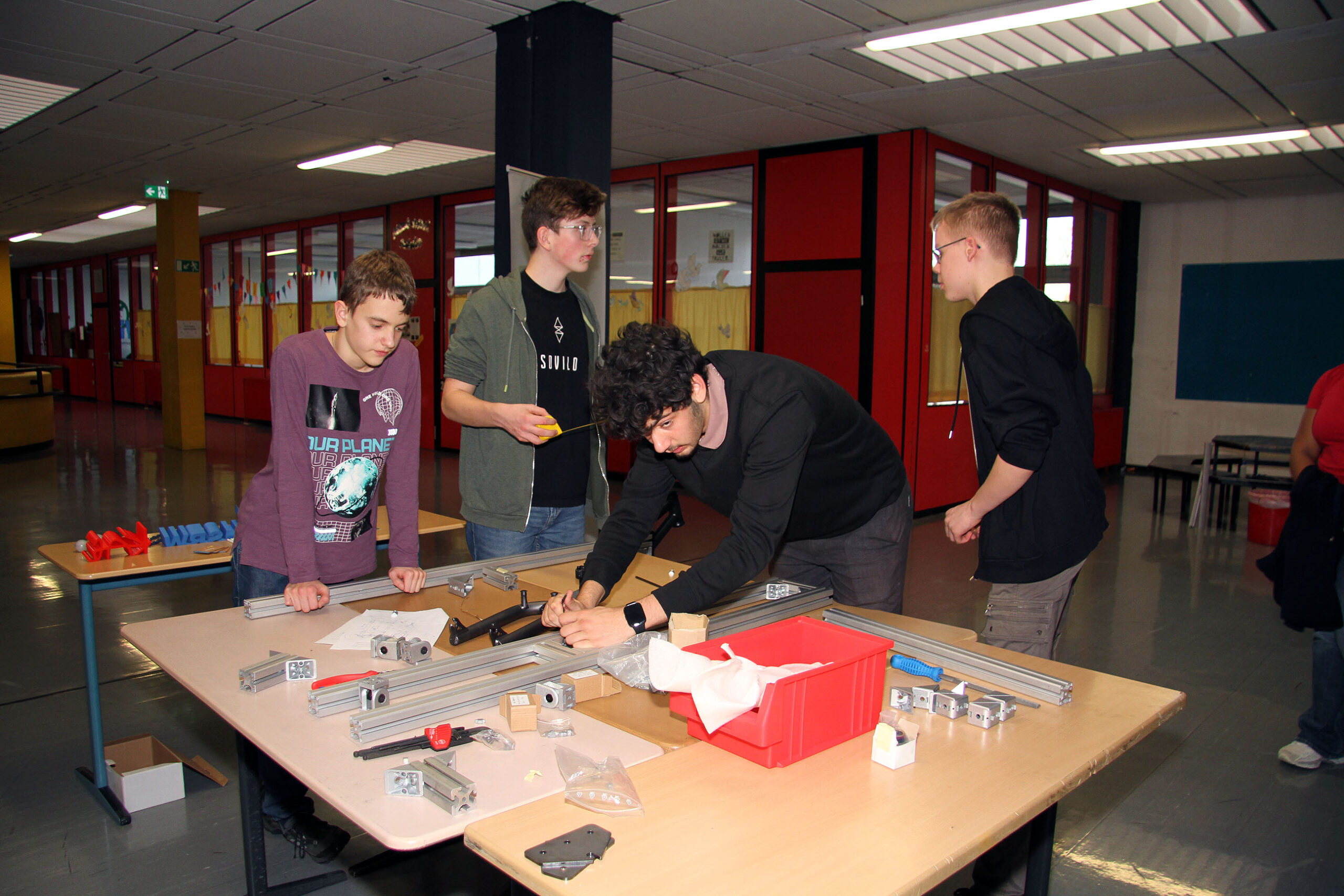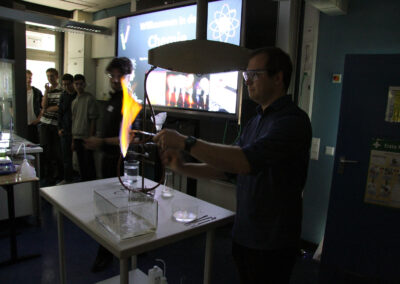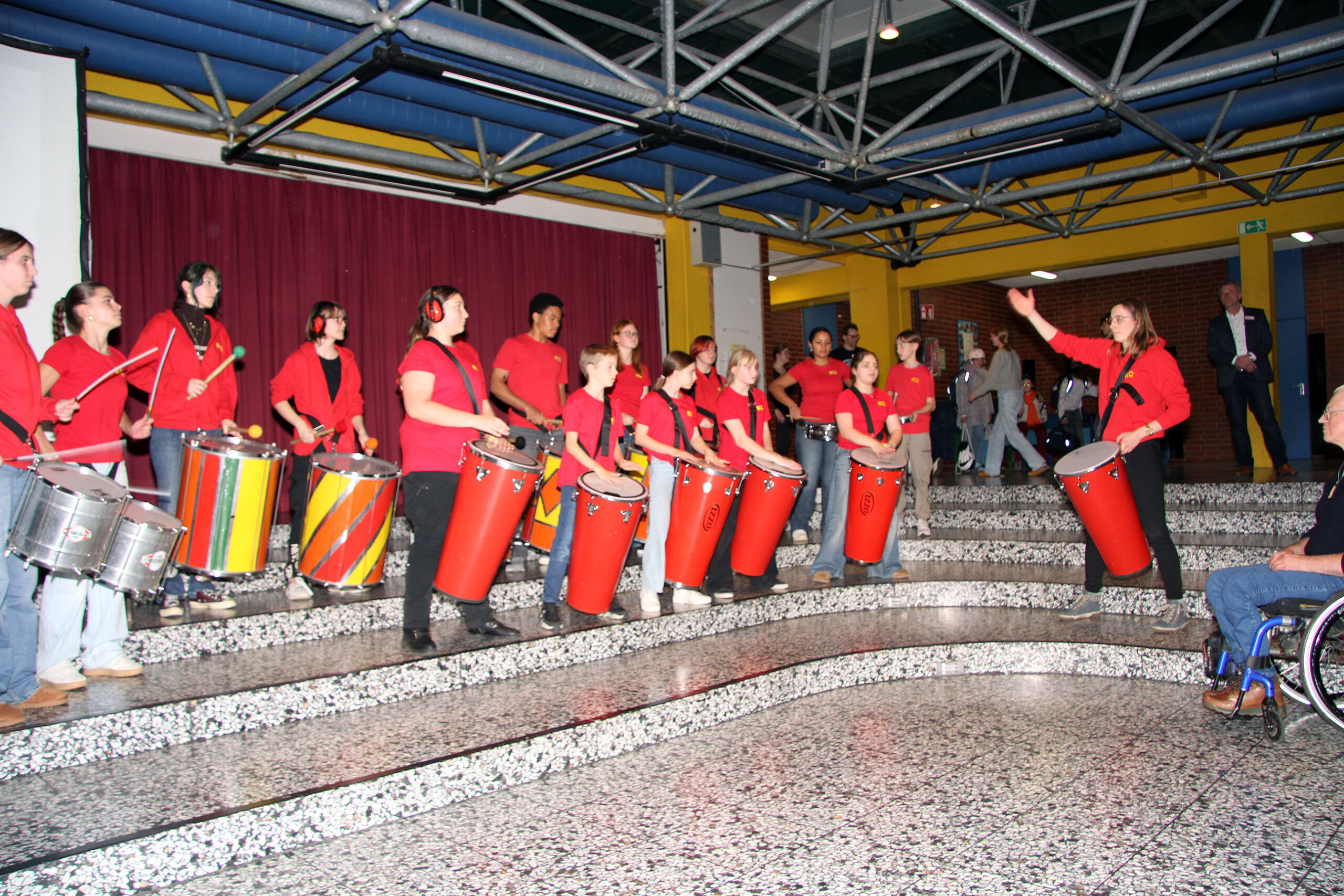 Viele WPUS (auch Imkern, mit einem erfolgreichen Verkauf des selbstgeschleuderten Honigs!) stellten sich vor, und so musste man sich zum Beispiel in der oberen Etage in Acht nehmen, damit man dem von unseren SchülerInnen in Zusammenarbeit mit der Hochschule Rhein-Waal selbstgebauten, ziemlich flotten „Motorrad“ des WPU Mechatronik rechtzeitig auswich. Aber noch viel mehr gab es zu sehen: die Naturwissenschaften stellten sich mit verschiedenen Experimenten vor, im Niederländisch-Raum konnte man niederländische Stroopwafels probieren, Instrumente konnten angetestet werden, und natürlich konnte man einer Probe der Konga Quings zuhören (für empfindliche Ohren mit Gehörschutz). Bei der Technik konnten kleine Kerzenhalter aus Holz ausgesägt sowie die schönen Werke vergangener Kurse bewundert werden und und und…
