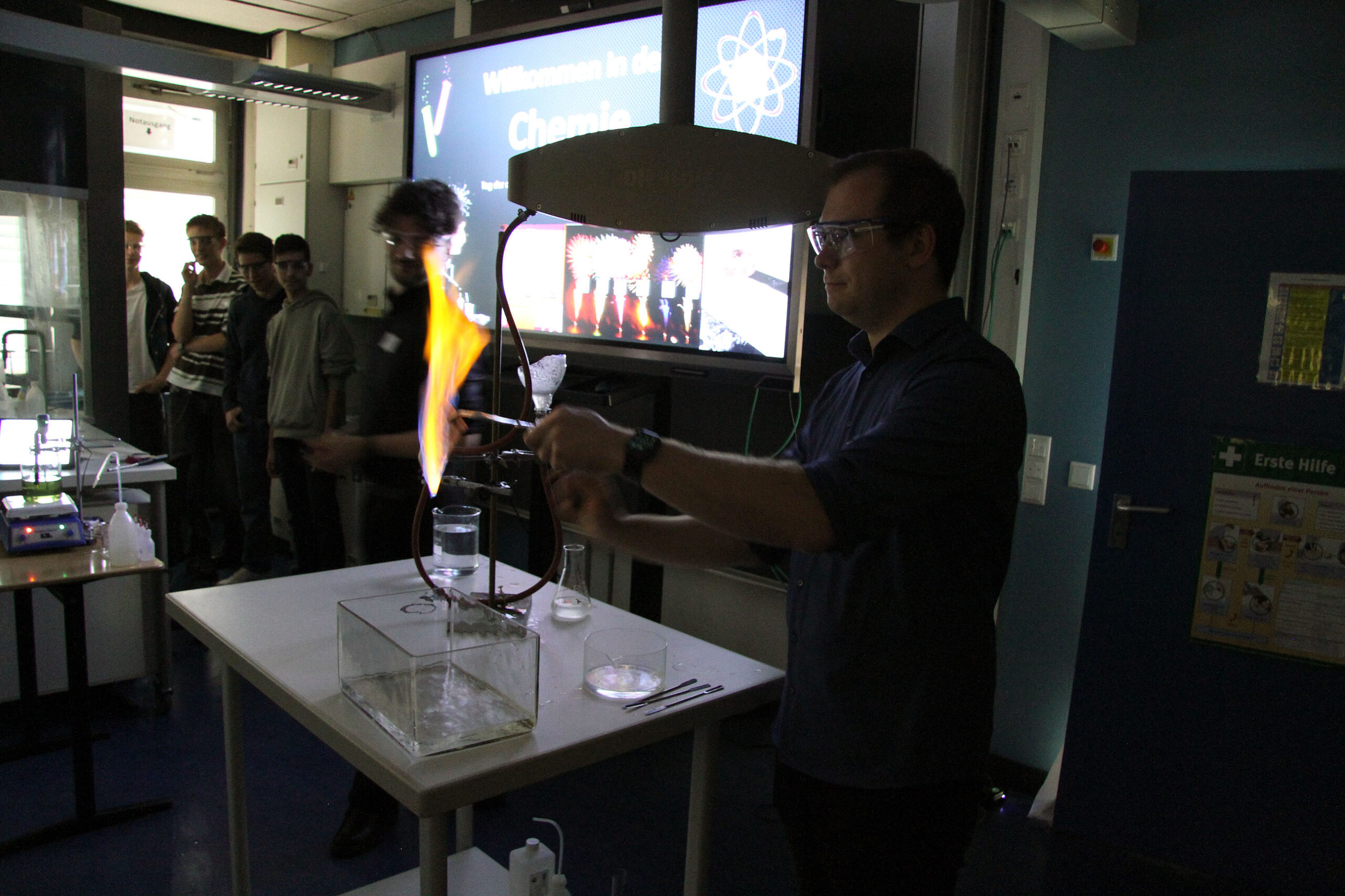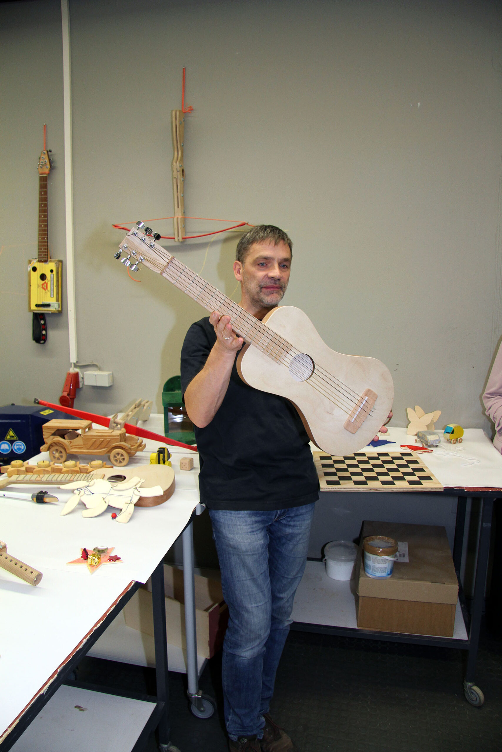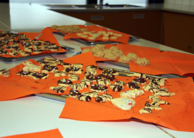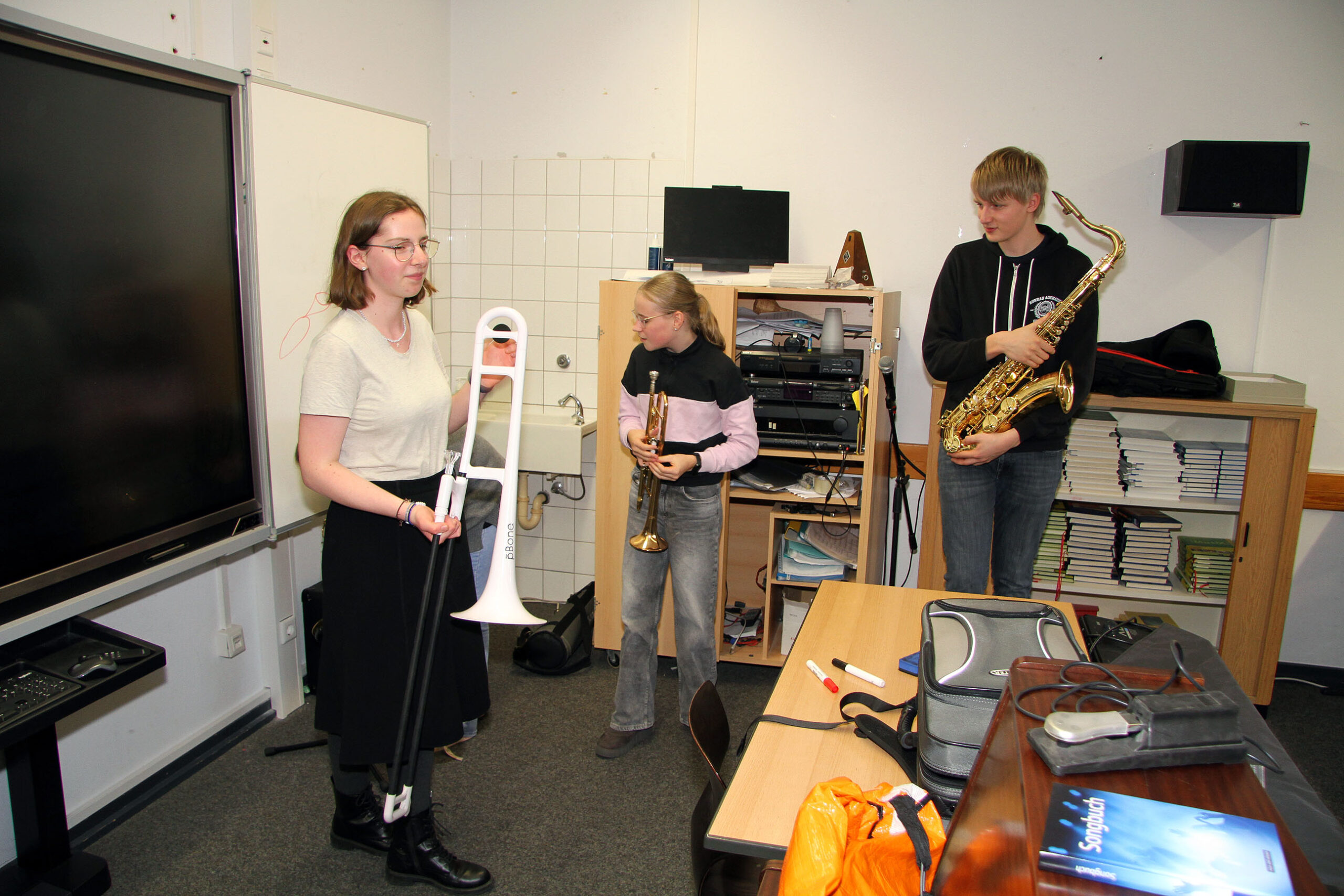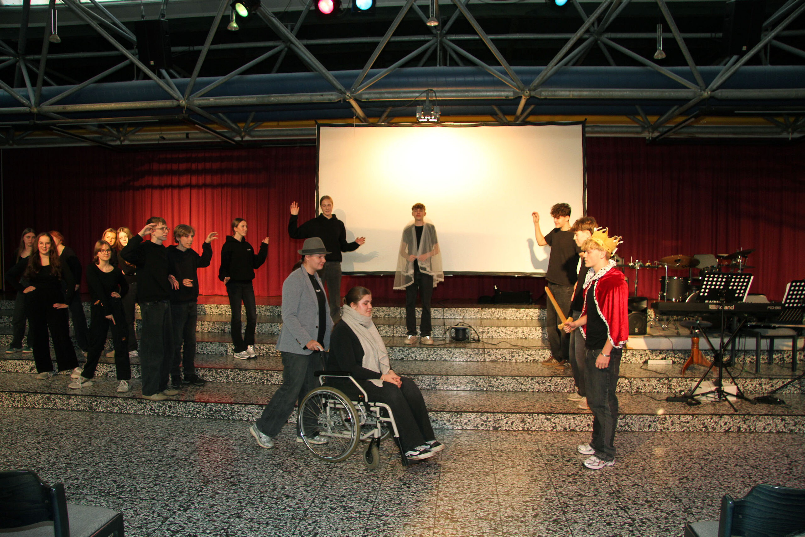 Viele WPUS (auch Imkern, mit einem erfolgreichen Verkauf des selbstgeschleuderten Honigs!) stellten sich vor, und so musste man sich zum Beispiel in der oberen Etage in Acht nehmen, damit man dem von unseren SchülerInnen in Zusammenarbeit mit der Hochschule Rhein-Waal selbstgebauten, ziemlich flotten „Motorrad“ des WPU Mechatronik rechtzeitig auswich. Aber noch viel mehr gab es zu sehen: die Naturwissenschaften stellten sich mit verschiedenen Experimenten vor, im Niederländisch-Raum konnte man niederländische Stroopwafels probieren, Instrumente konnten angetestet werden, und natürlich konnte man einer Probe der Konga Quings zuhören (für empfindliche Ohren mit Gehörschutz). Bei der Technik konnten kleine Kerzenhalter aus Holz ausgesägt sowie die schönen Werke vergangener Kurse bewundert werden und und und…