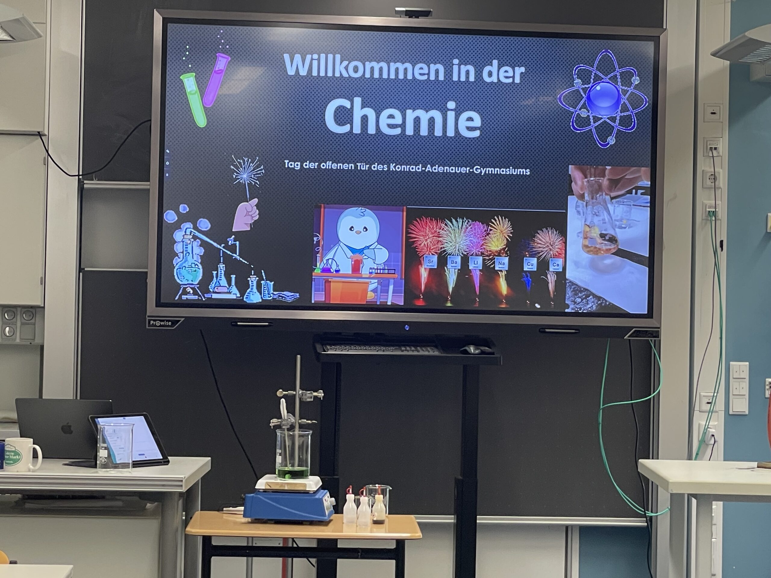 Am 12.11.2025 war am Konrad-Adenauer-Gymnasium wieder Tag der offenen Tür. Die Viertklässler, die sich unsere Schule angeschaut haben, wurden herzlichst begrüßt. Es gab verschiedene „Stationen“, die in kleinen Gruppen besucht werden konnten. Es gab Chemie, Biologie, Physik, Mechanik, Musik, Konga Quings, Niederländisch, AG Fairständnis, Kochen, Kunst, Montessori-Zweig und als letztes der Rundgang in den Ganztag. Jede Gruppe hatte auch einen eigenen Leiter, von verschiedenen WPUs. Dieses Mal waren unter anderem Leute aus dem WPU Coaching dabei. Diesen WPU könnt ihr by the way ab der 9. Klasse wählen. Davor wurden die Kinder in Gruppen eingeteilt und wurden von Lehrern erstmal herumgeführt, damit die Kinder auch wissen, wo was ist.