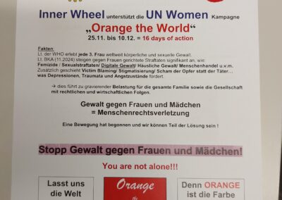 Die WHO hat gemeinsam mit den UN die weltweite Aktion „Orange the World“ initiiert, um Gewalt gegen Mädchen und Frauen einzudämmen – und am besten ganz zu verhindern. Jede Art der Gewalt ist eine Menschenrechtsverletzung und somit nicht hinnehmbar.