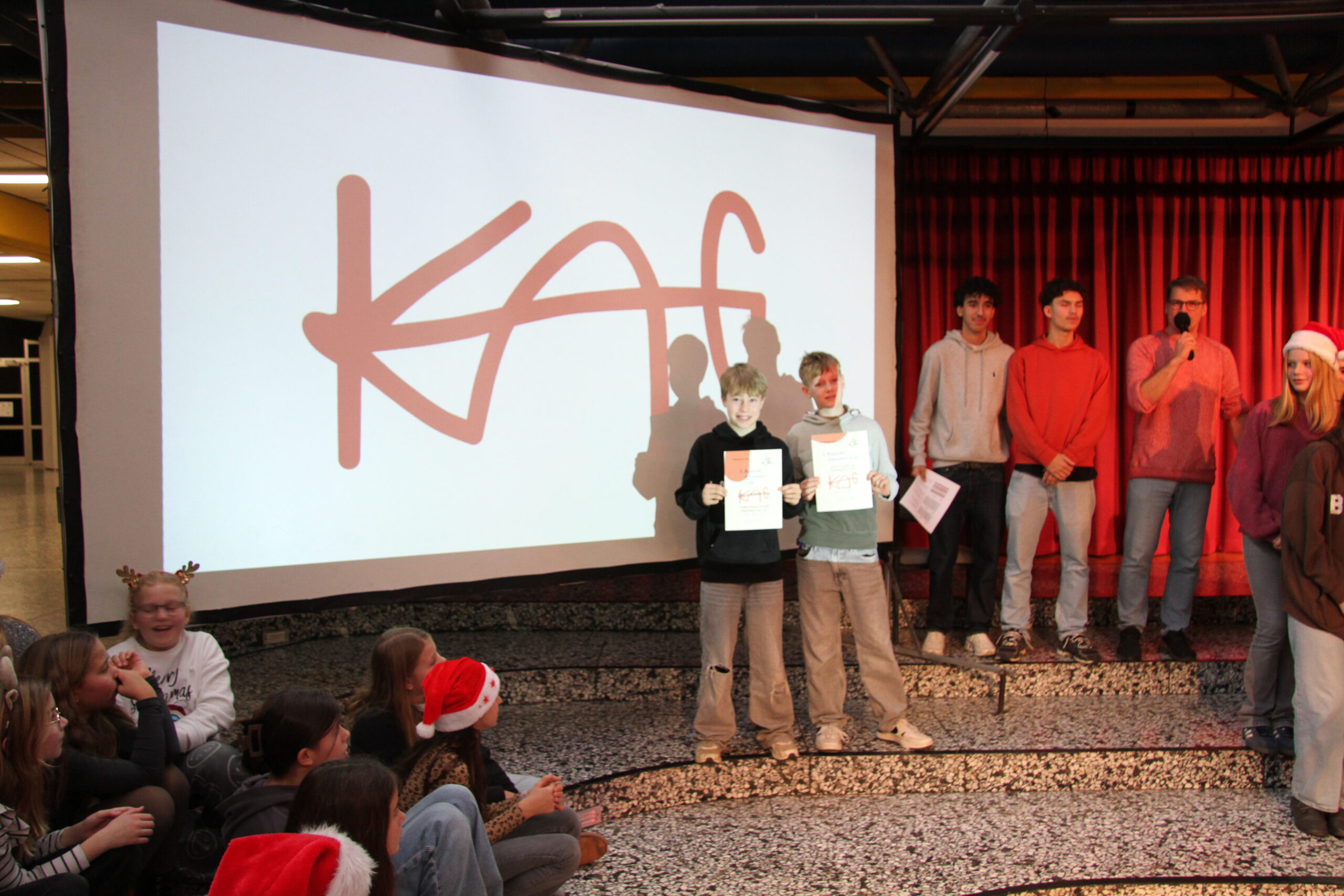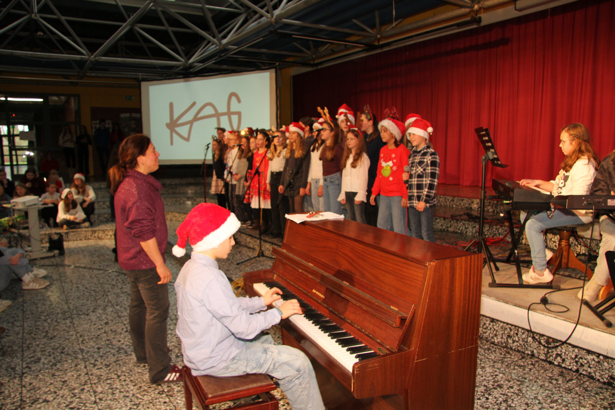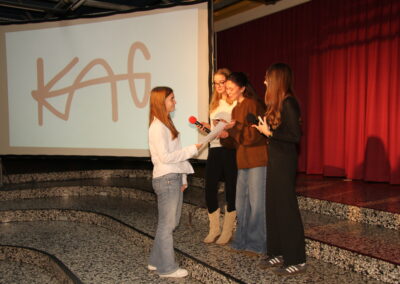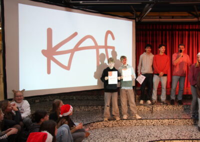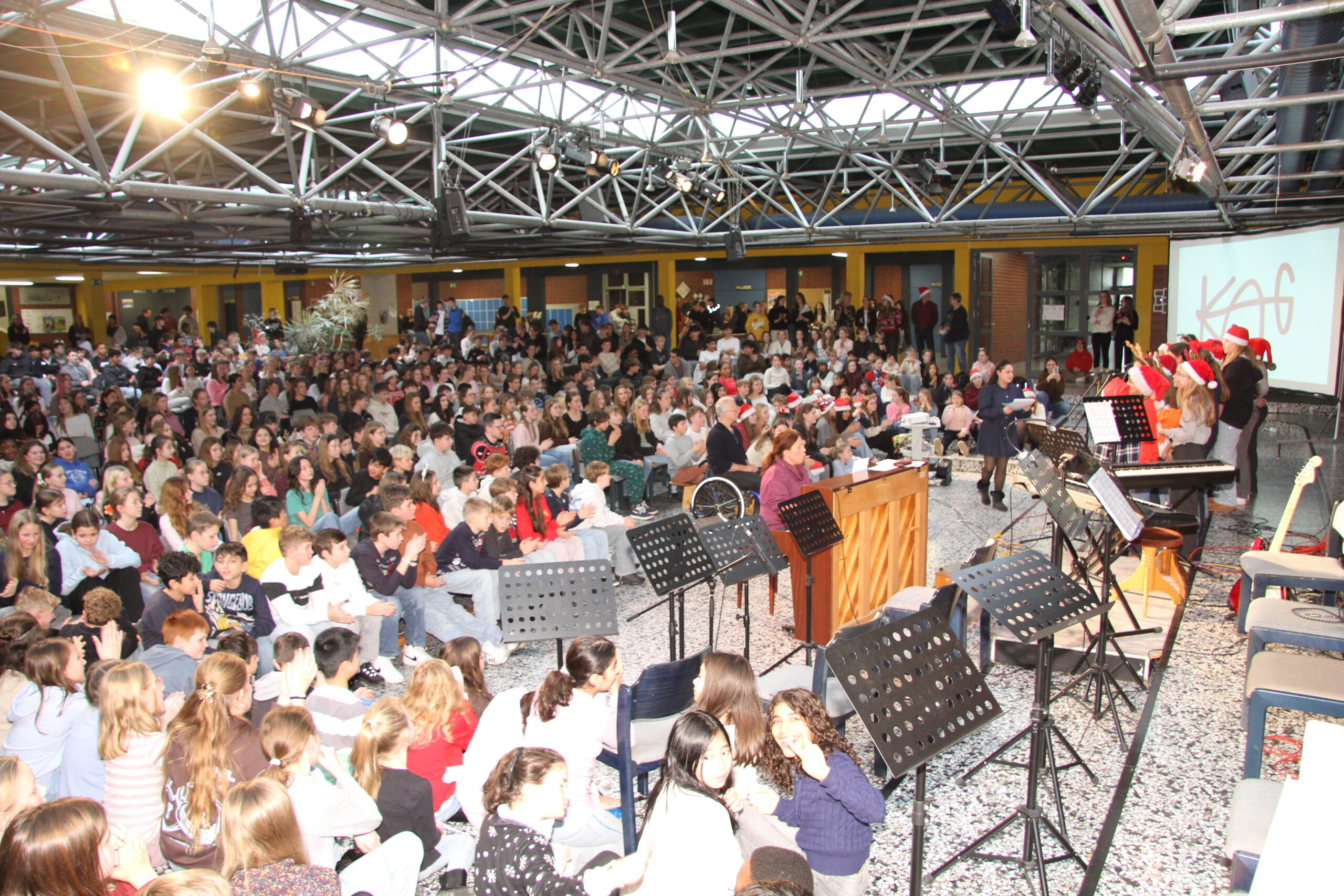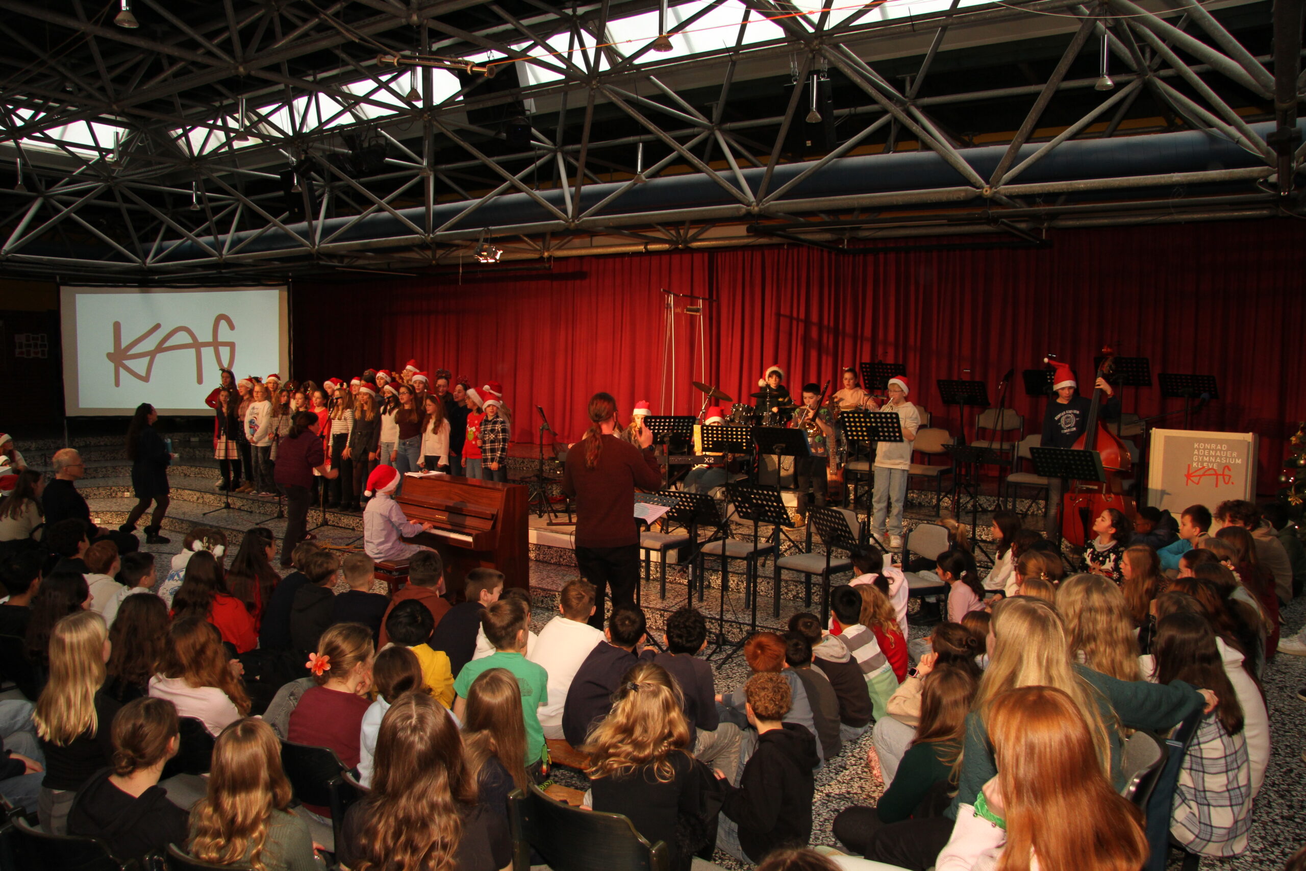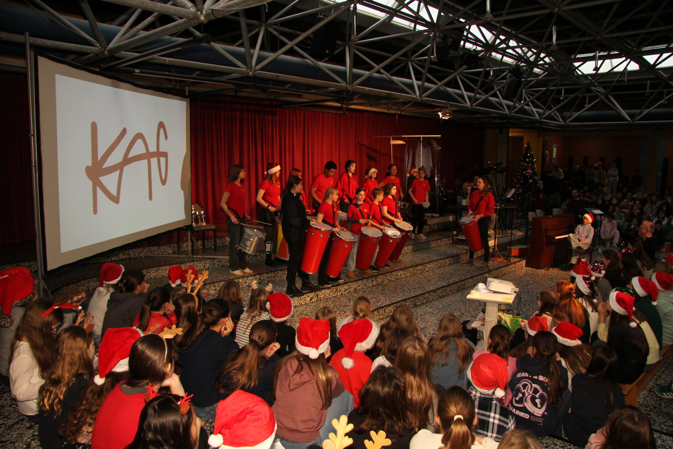 Es ist eine liebgewonnene Tradition am KAG, dass sich kurz vor den Weihnachtsferien die gesamte Schulgemeinschaft im PZ trifft und auf das vergangene Jahr zurückblickt. So geschah es auch im Dezember 2025! Mit viel Musik und vielen Beiträgen von SchülerInnen und LehrerInnen wurde eine festliche Feier gestaltet, die das Jahr angemessen ausklingen ließ.