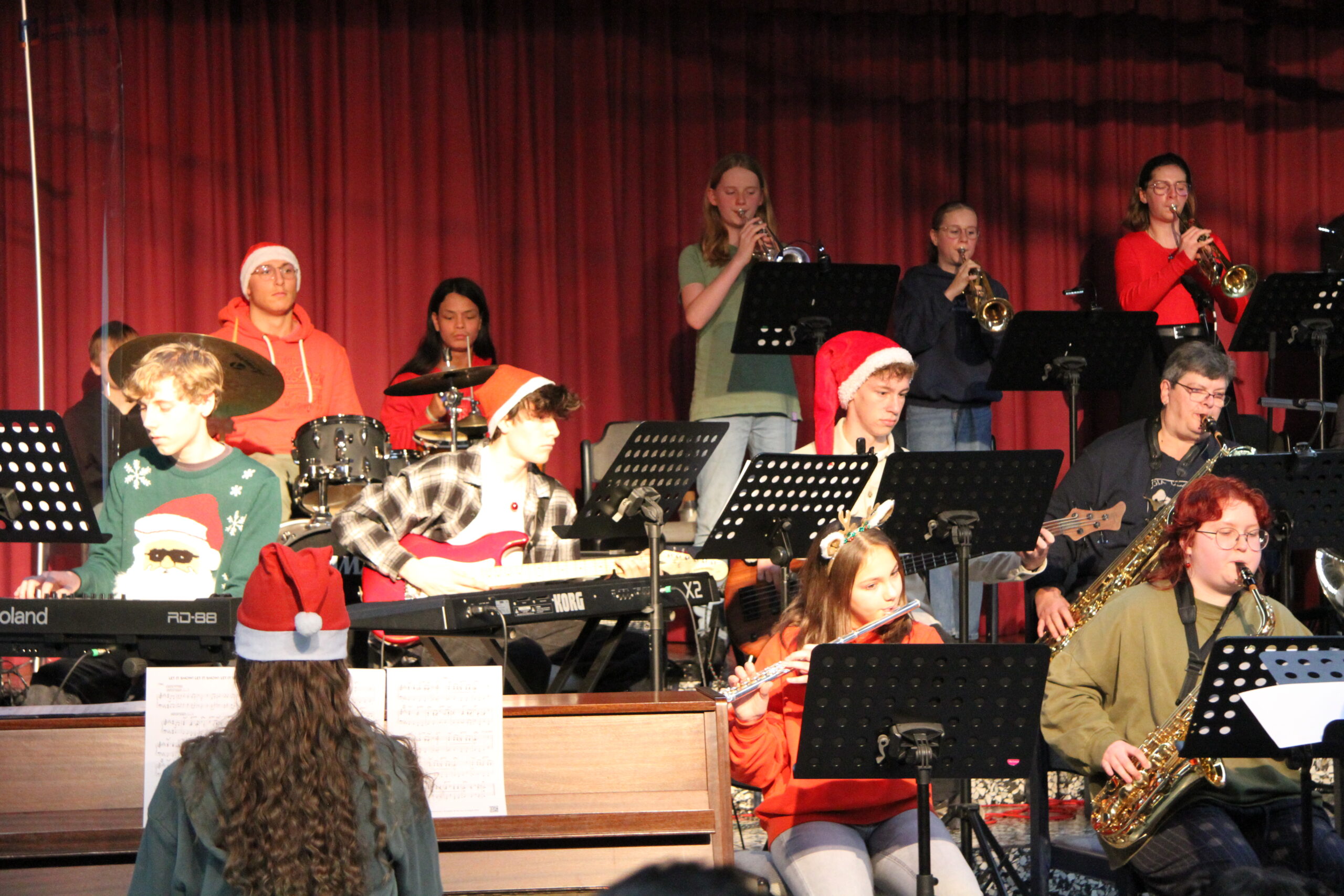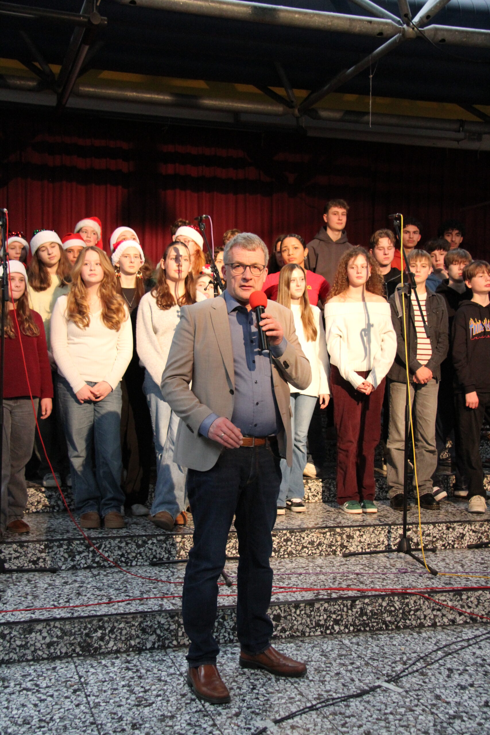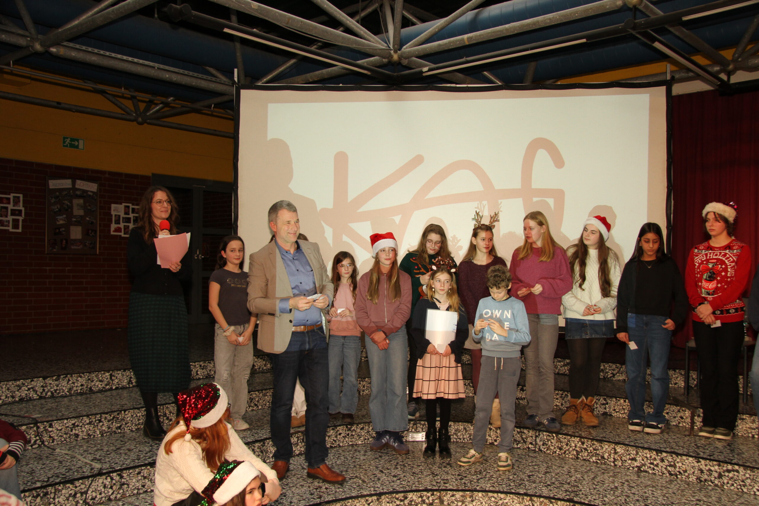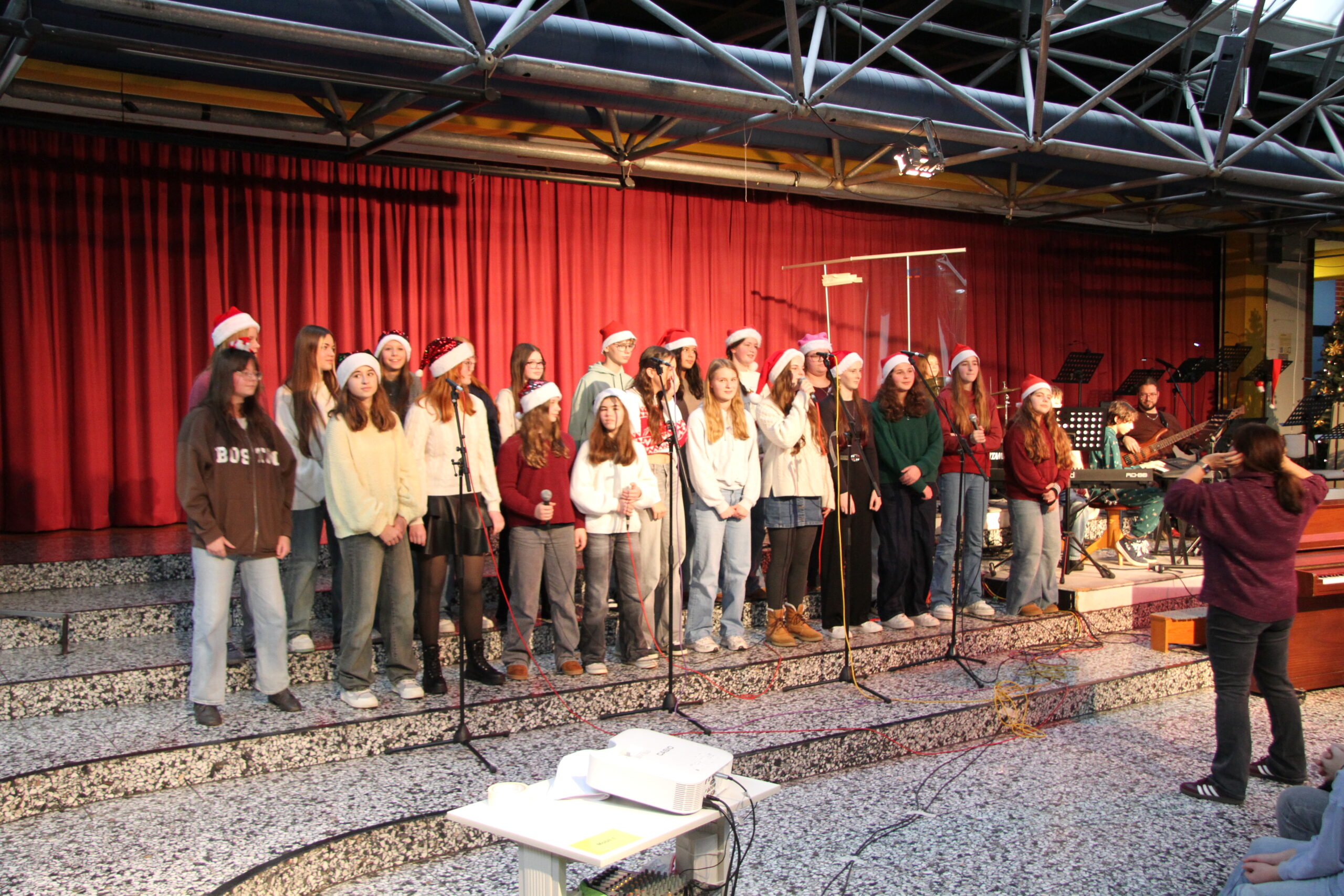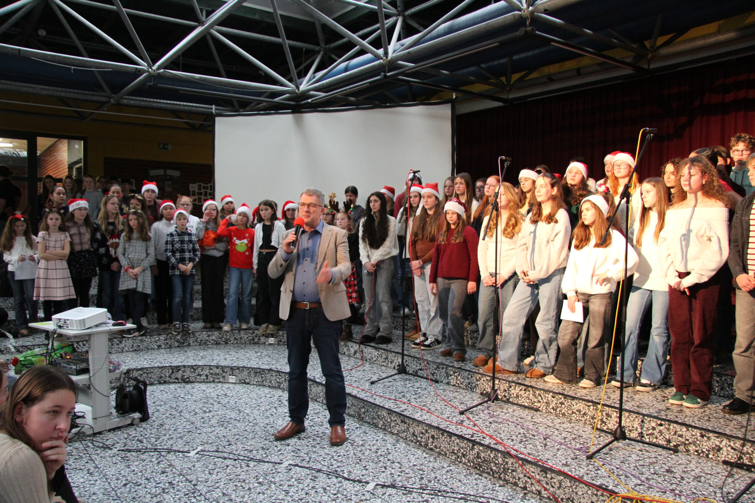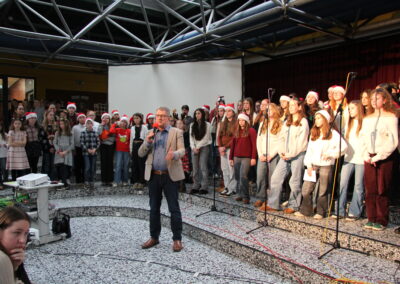 Es ist eine liebgewonnene Tradition am KAG, dass sich kurz vor den Weihnachtsferien die gesamte Schulgemeinschaft im PZ trifft und auf das vergangene Jahr zurückblickt. So geschah es auch im Dezember 2025! Mit viel Musik und vielen Beiträgen von SchülerInnen und LehrerInnen wurde eine festliche Feier gestaltet, die das Jahr angemessen ausklingen ließ.