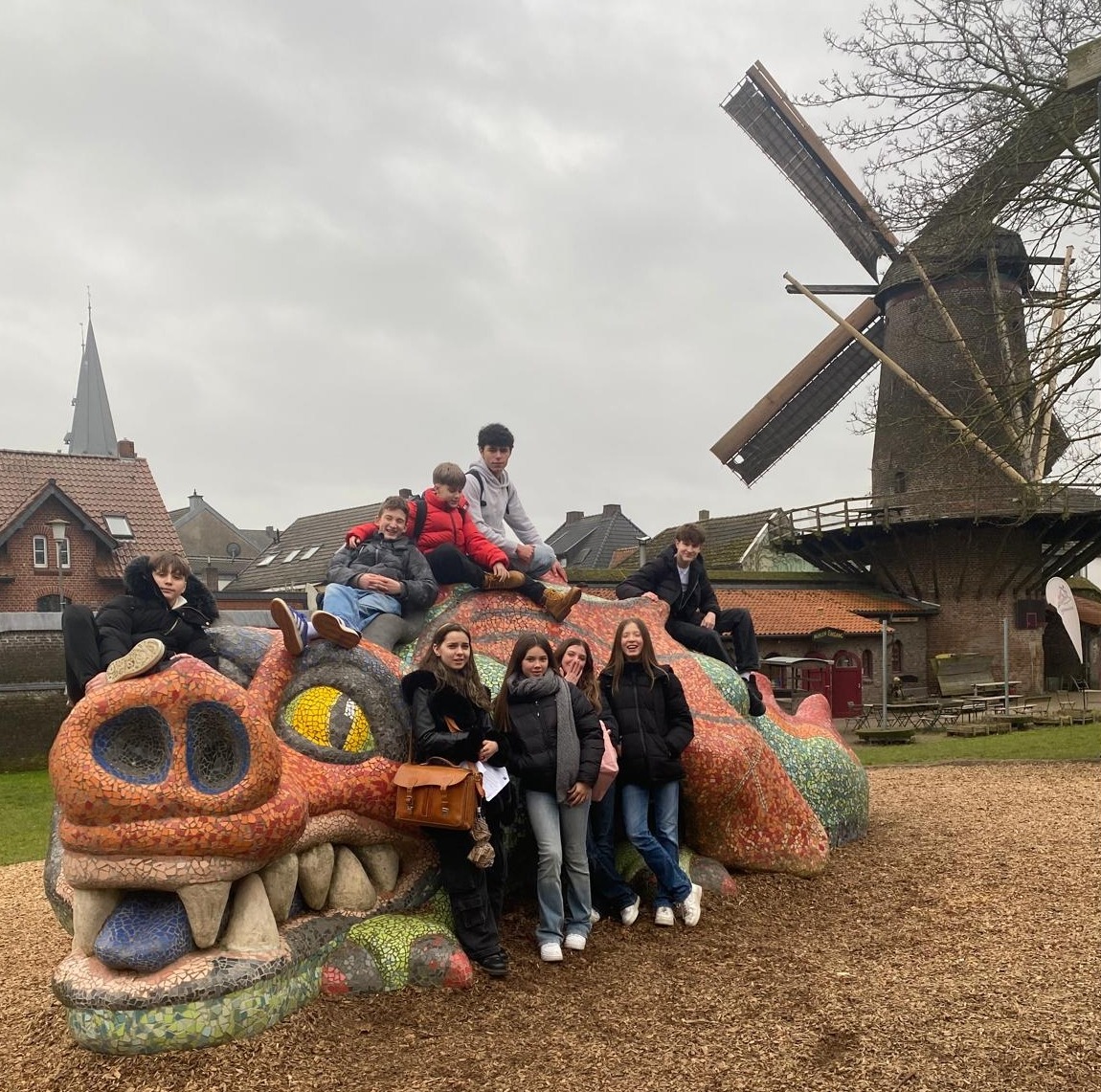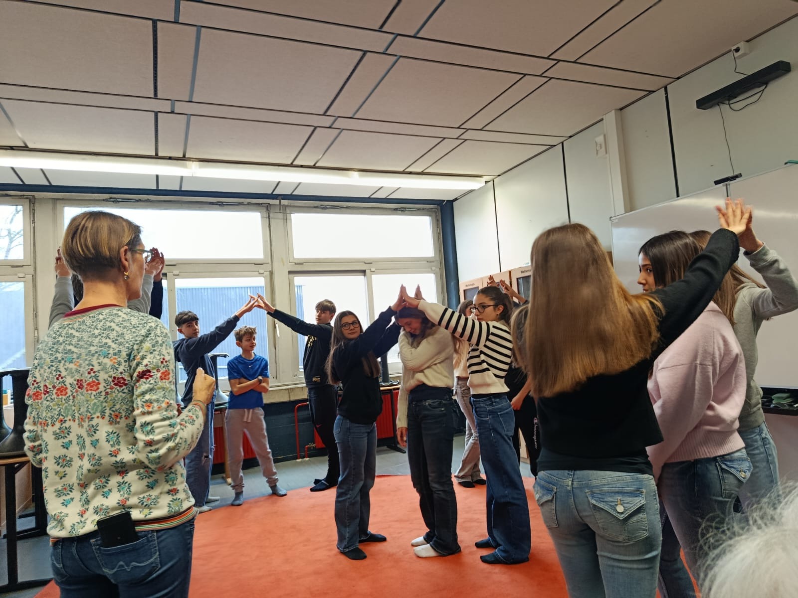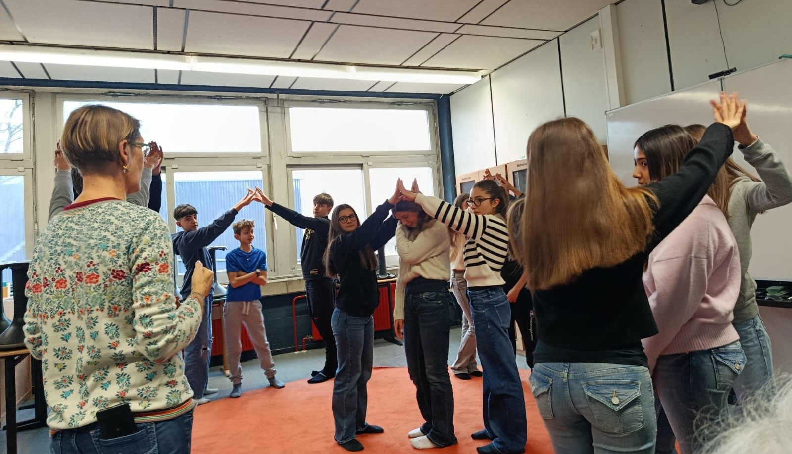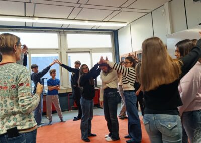 Der Dienstagmorgen startete mit der schlechten Nachricht, dass das geplante Museumsprogramm leider aufgrund von Krankheit ausfallen musste. Spontan lud Frau Becker alle zu einer Schnupperstunde Theaterübungen und Entspannungsmeditation ins KAG ein. Nach der 4. Stunde spazierten dann alle zum Bahnhof, wo sie ihre deutschen Partner wieder trafen. Gemeinsam fuhren wir mit dem Bus nach Xanten und entdeckten bei einer Schatzsuche die Besonderheiten der Römerstadt (es gab sogar Plagegeister!). Auch der Mittwoch startete für einige etwas holprig, da ein Teil der Gruppe den Zug nach Köln leider knapp verpasste (Wer ahnt auch, dass der RE10 tatsächlich mal pünktlich ist!). Frau Moerkerks Bemühungen, mit dem Auto den Zug einzuholen, scheiterten leider, sodass die Gruppe erst im Sport- und Olympiamuseum in Köln wieder zueinander fand. Da das Wetter leider so gar nicht auf unserer Seite war, verzichteten wir schweren Herzens auf die Dombesteigung und verbrachten den Nachmittag mit Shoppen und Pizza. Auch gut! Dank des sportlichen Einsatzes zweier EFler waren am Ende des Tages auch alle italienischen Rucksäcke pünktlich am Gleis, sodass die Rückfahrt von Köln komplikationslos von statten ging (… diesmal hatten wir auch Tickets, auf der Hinfahrt waren diese leider auf Frau Moerkerks Handy… ups!)
