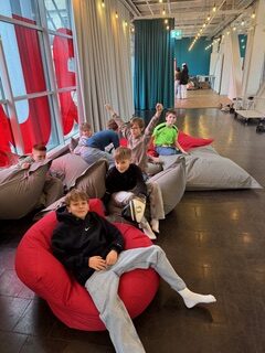 Als wir in Düsseldorf angekommen waren, sind wir zum Theater gelaufen. Dort angekommen wurden wir auf „die Brücke“ geführt; das ist ein großer Raum, wo wir Taschen und Jacken ablegen konnten. In dem Raum gab es Sitzsäcke und Boxhandschuhe. Das Theaterstück hieß „Timm Thaler oder das verkaufte Lachen“. Wir fanden es gut, manche haben sich an einigen Stellen erschrocken.