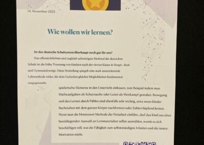 Der Tag barg viele neue Eindrücke, die kurzen Impulsvorträge von verschiedenen Professoren wie z.B. Klaus Hurrelmann waren eindrucksvoll und eröffneten neue Perspektiven über das aktuelle Schulsystem und die möglichen Veränderungen in der Zukunft. Besonders interessant waren die Impulse zu Alternativen Schulfächern von Margret Rasfeld.