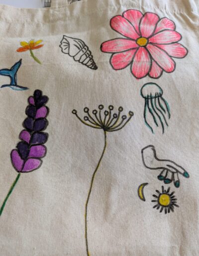 Im WPU Künstlerwerkstatt von Frau Keßler wird nicht nur gemalt und gezeichnet, sondern auch designt! So wie jetzt hier: langweiligen, farblosen Baumwolltaschen wurde mit Textilmarkern ein buntes, fröhliches Leben eingehaucht. Die Schülerinnen und Schüler der 7. und 8. Klassen, die sich gar nicht genug künstlerisch austoben konnten und deshalb den WPU gewählt hatten, haben ihrer Fantasie freien Lauf gelassen, und richtig schöne „Designobjekte“ erstellt! Ob es nun abstrakte Muster waren oder Superhelden, fast realistisches Obst oder das ganze Alfabet – es gab die unterschiedlichsten Ideen, die akribisch umgesetzt wurden. Wir stellen ein paar von ihnen an dieser Stelle vor!